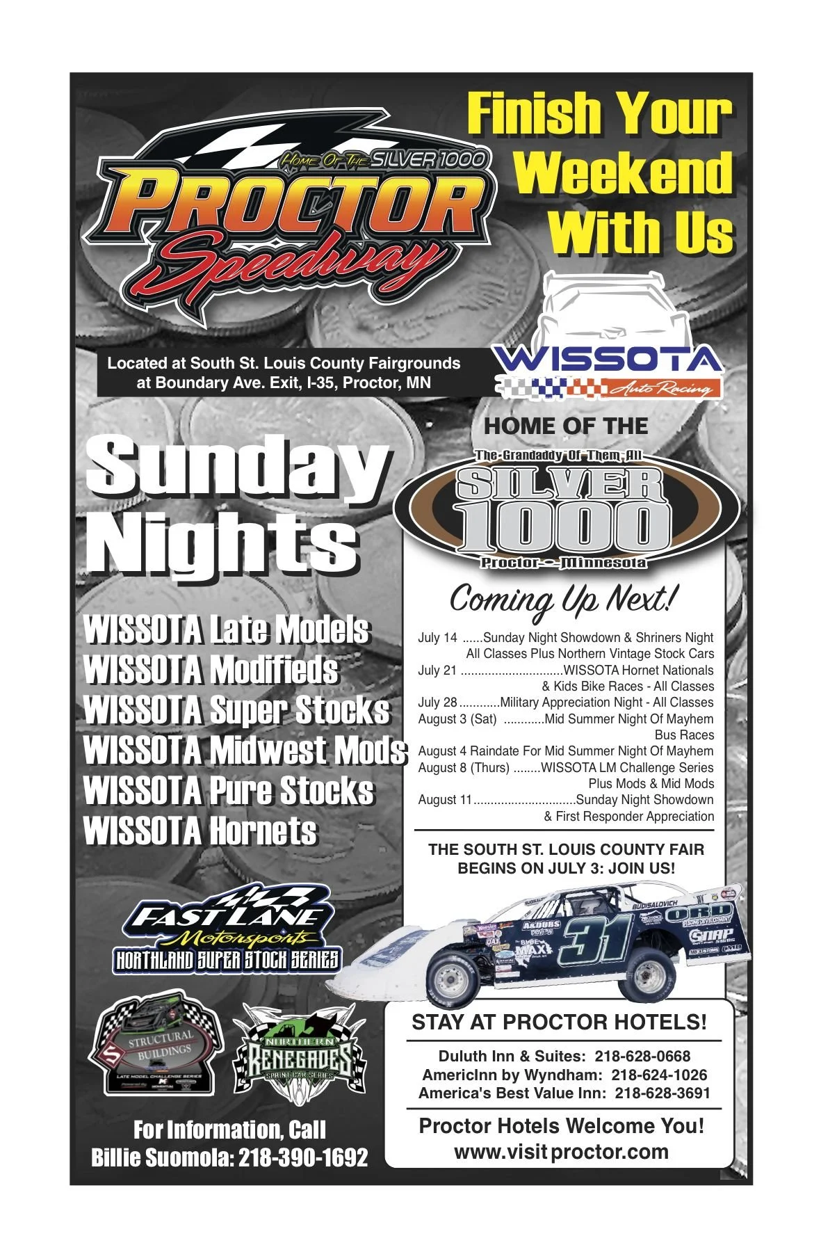 PROCTOR, MN (July 1) - Proctor Speedway opened its July schedule with a bang, as the track hosted a rare Monday night special with WISSOTA Midwest Modifieds as part of the program. Super Late Models as well as Northern Renegade Non-Wing Sprints were also a highlight for fans in the Twin Ports area.