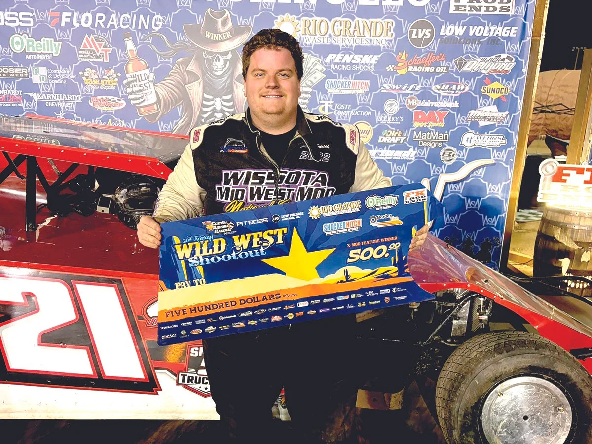 It was a commanding lead to the finish for Dotson, who grabbed his first-ever Wild West Shootout victory. Pierce, Gustin, Erb and Davenport completed the top five. Of the WISSOTA racers on hand, Laela Eisenschenk was the lone feature qualifier and she finished 17th from her 24th starting spot.