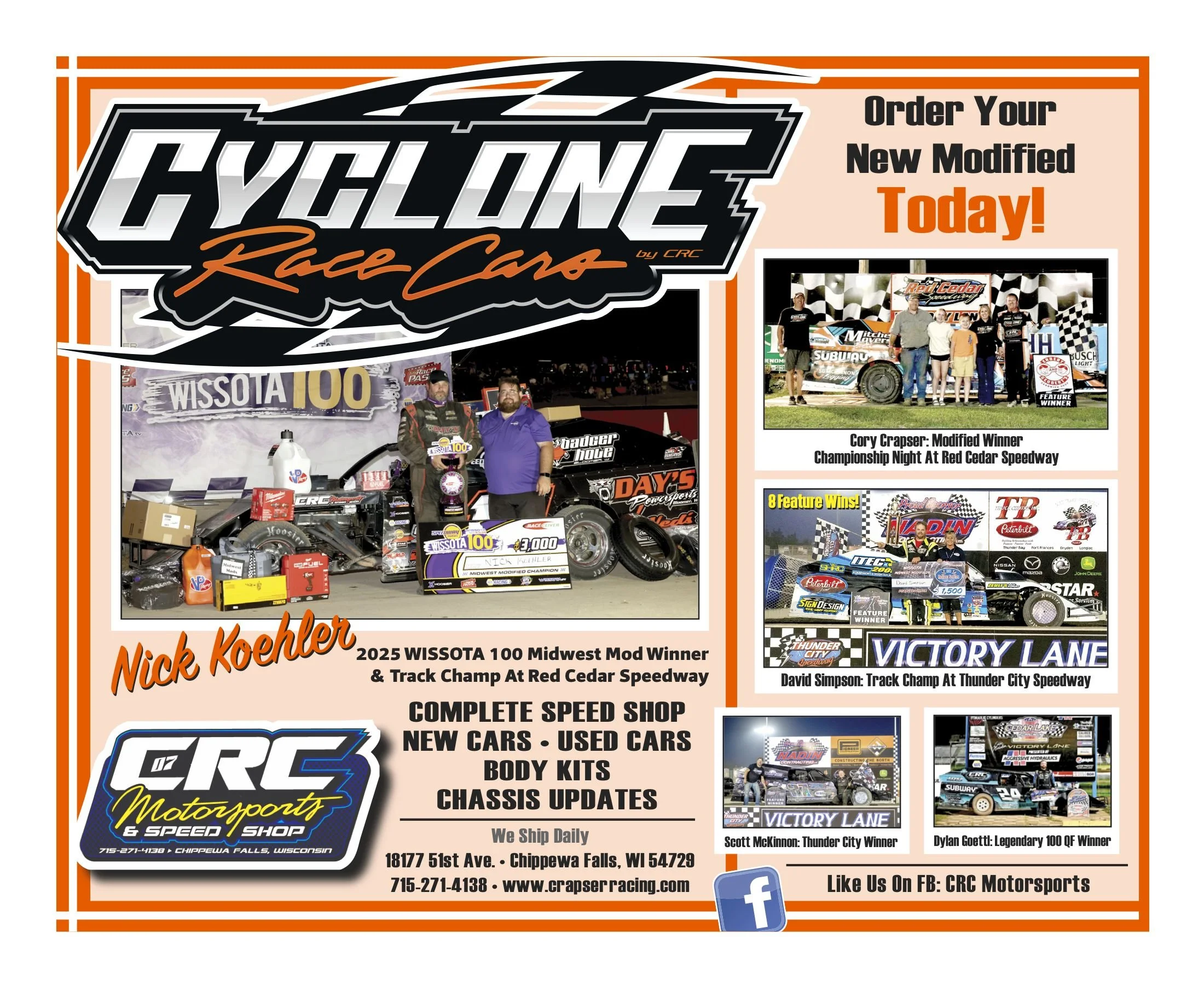 Other WISSOTA racers on hand who made the feature included Parker Anderson (6th), Scott Bintz (10th), Duke Erickson (11th), Scott Tofte (13th), and Brandon Rehill (23rd).