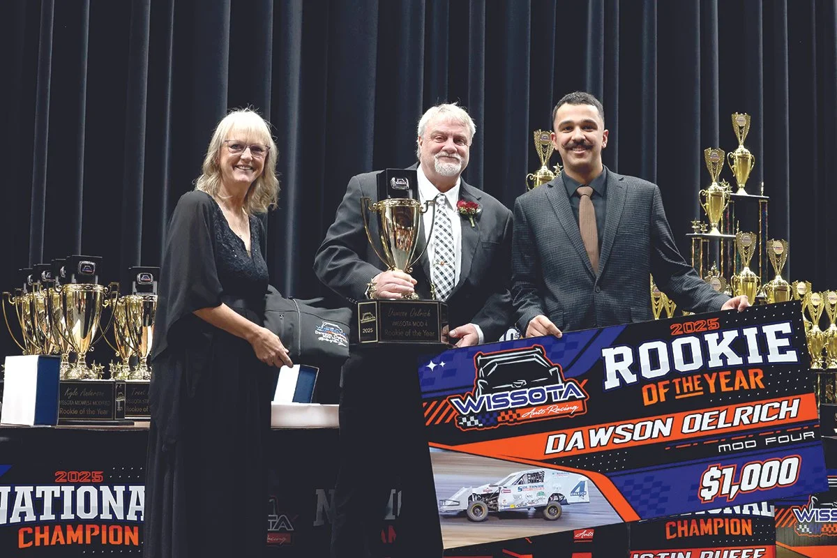 BEMIDJI, MN - It was a hallmark season for 19-year-old Bemidji racer Dawson Oelrich. The WISSOTA Mod Four Rookie of the Year not only received the accolades of winning the national ROY title in November at the WISSOTA banquet, but during the 2025 season he also got his first feature win on July 20.