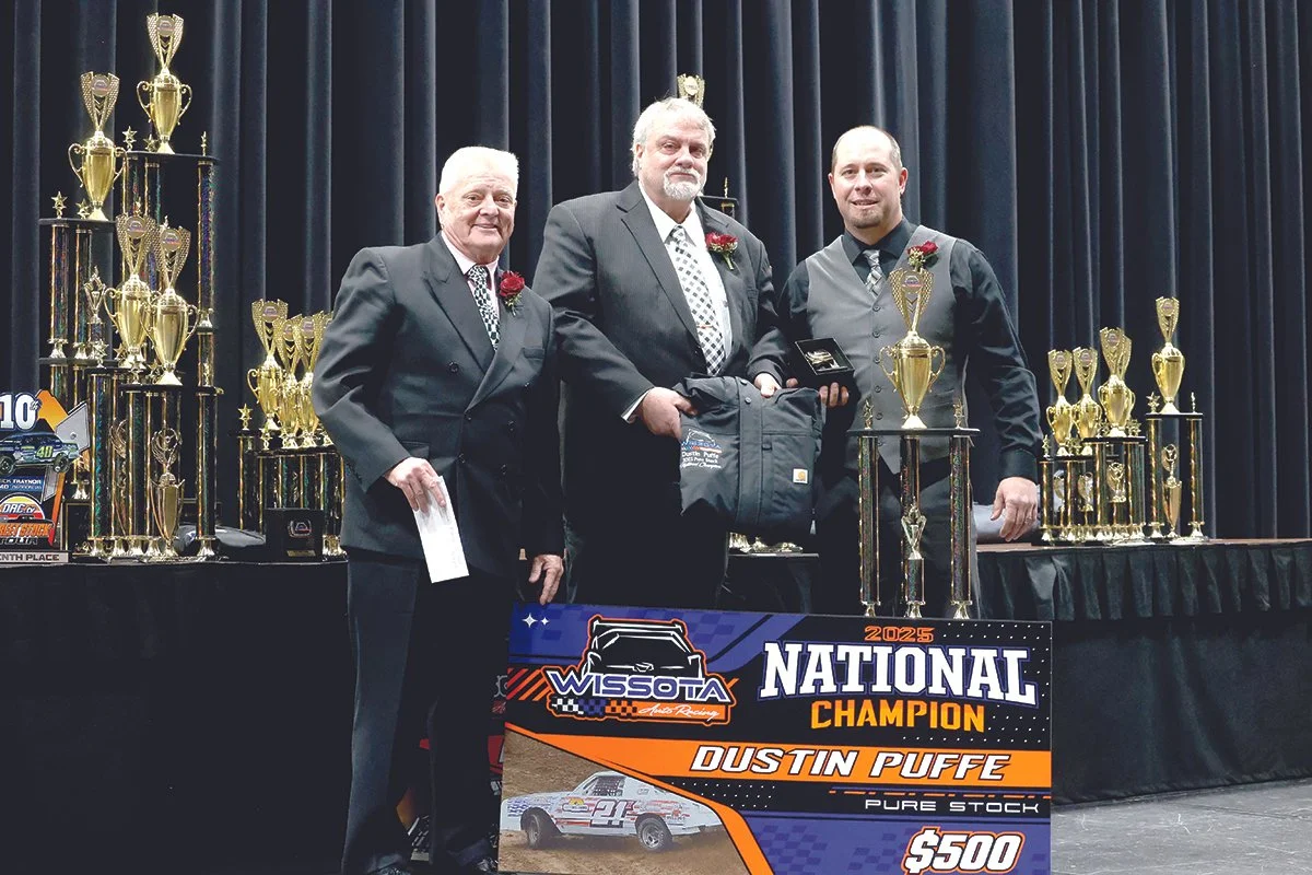 LAPORTE, MN — Dustin Puffe’s perseverance helped him bring home the WISSOTA Pure Stock National Championship in 2025. The 41-year-old from Laporte, Minnesota won 16 times in 2025, including a victory during the first night of the Chicken Shack Nationals at Bemidji Speedway, and the $1000-to-win show at Grand Rapids Speedway — where that tough-as-nails attitude helped him overcome an early penalty and race back through the field for the victory. Puffe was also the track champion at Bemidji Speedway and Greenbush Race Park.