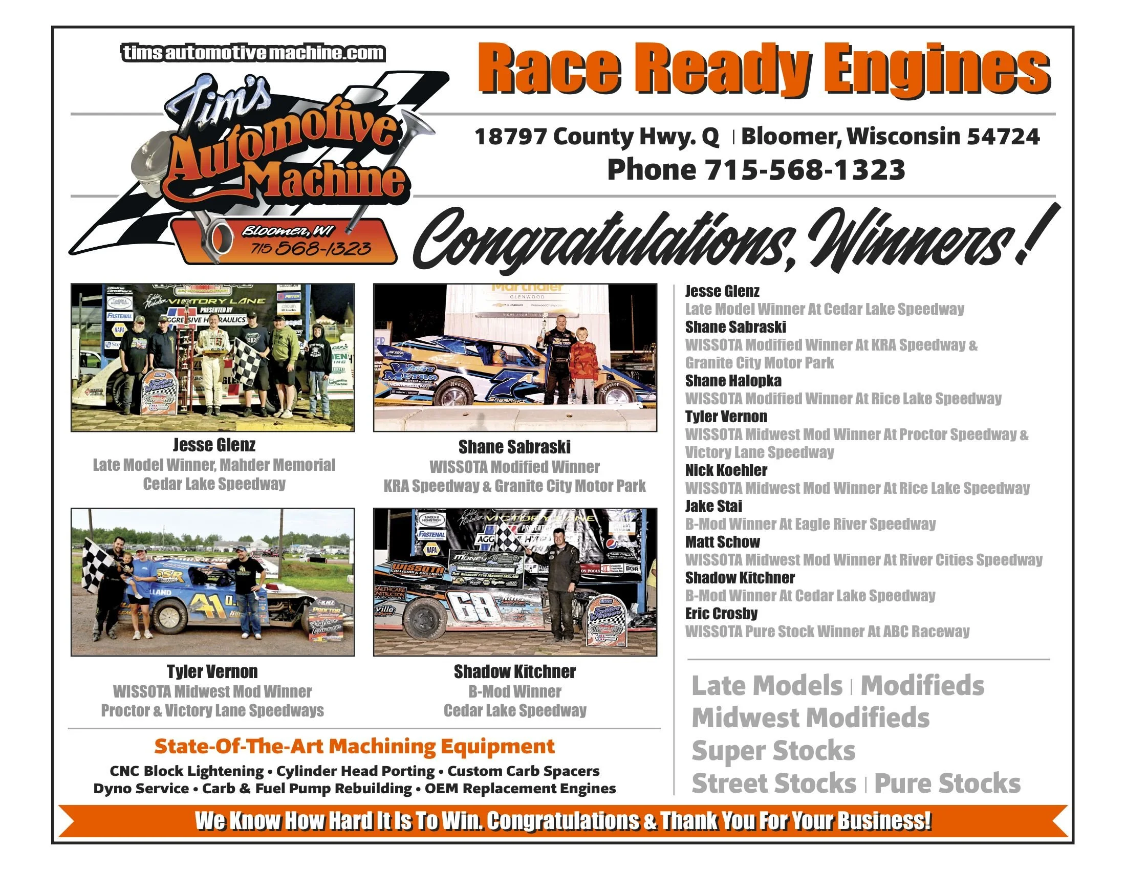 WISSOTA Dirt Track Series winners included Josh Zimpel, Joey Jensen and Keith Thell.