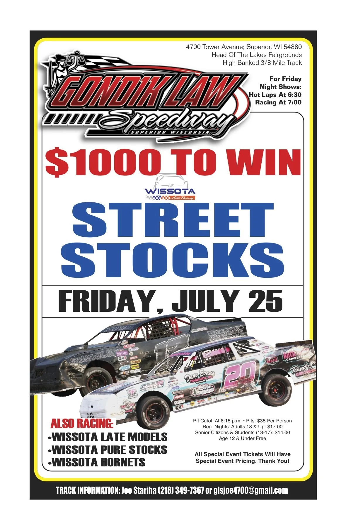 Shane Sabraski took the $1,000 win in the WISSOTA Super Stock headliner. Sabraski started inside of the second row and settled into an early three-car battle for second with polesitter Steve Stuart and Andy Grymala, while trailing Tristan LaBarge for the first four laps.