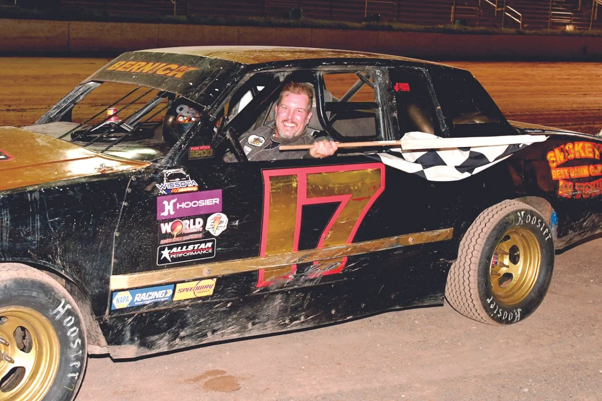 Heading into the final night of WISSOTA Pure Stock action, Eric Crosby and Jake Smith were tied for top honors in the class. On track, Bernick started in the second row and made his way past front-row starters Crosby and Smith along the high side at about the midpoint to grab the victory in the WISSOTA Pure Stocks. He was chased to the checkered flag by Smith, Crosby, Austin Carlson and Tom Treviranus in the top five. Smith was named the track champion in the Pure Stocks.