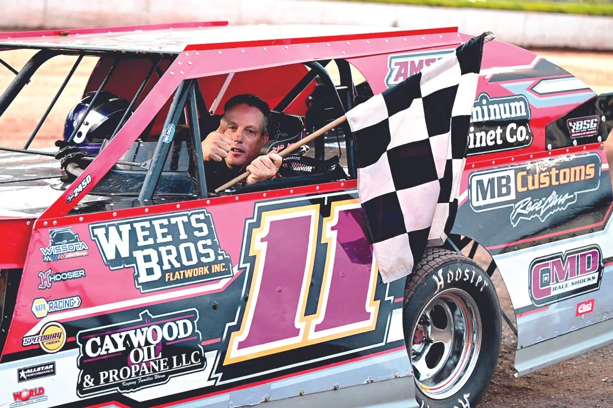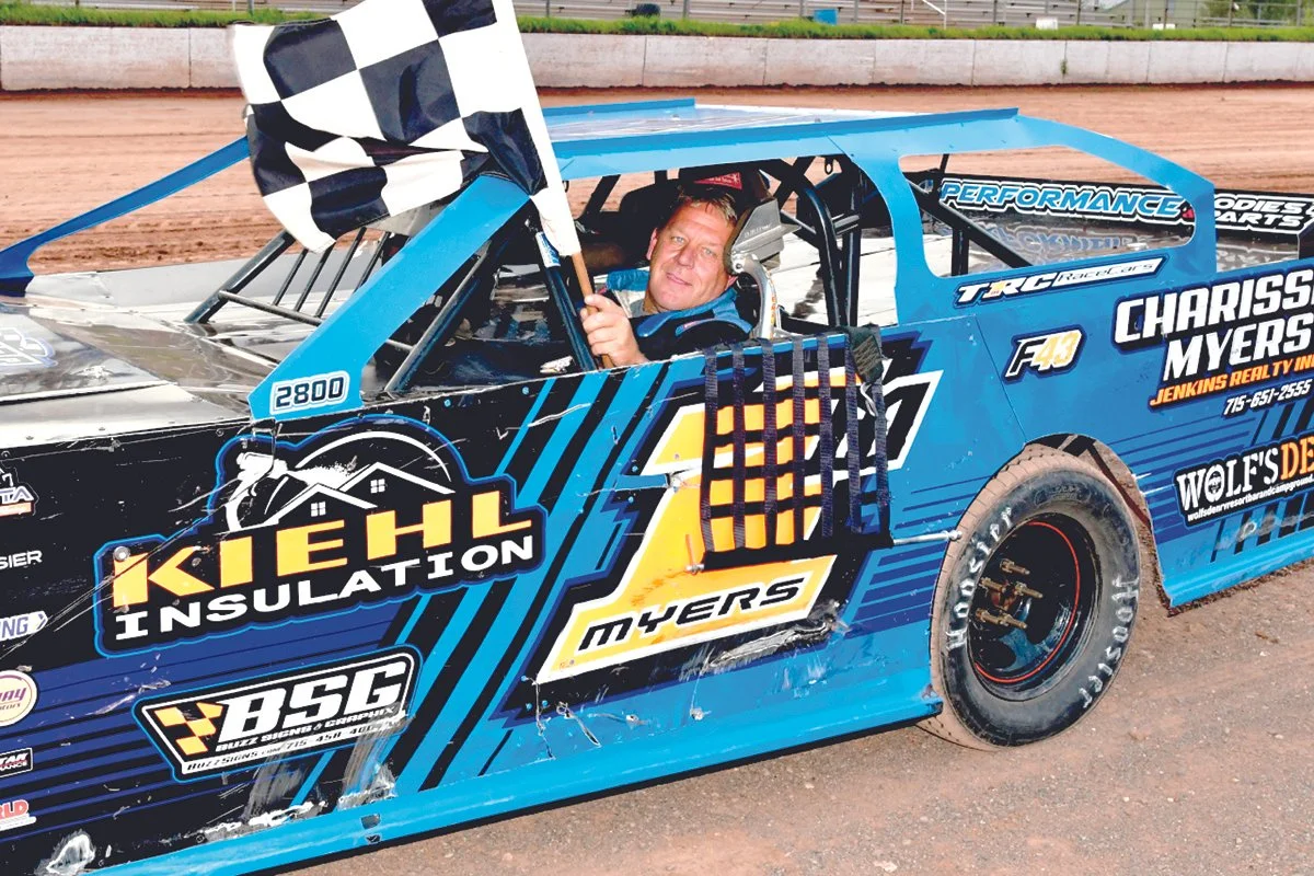 Myers started in row two of the WISSOTA Super Stock feature, making his way to the front by lap seven after a side-by-side battle with Shawn McFadden. Myers held off Steve Stuart’s effort in a two-lap shootout to the finish to take the win, while Stuart was second, McFadden was third, Kevin Salin was fourth and Thomas Hauert improved six spots to fifth. Stuart was named the track champion in the Super Stocks.