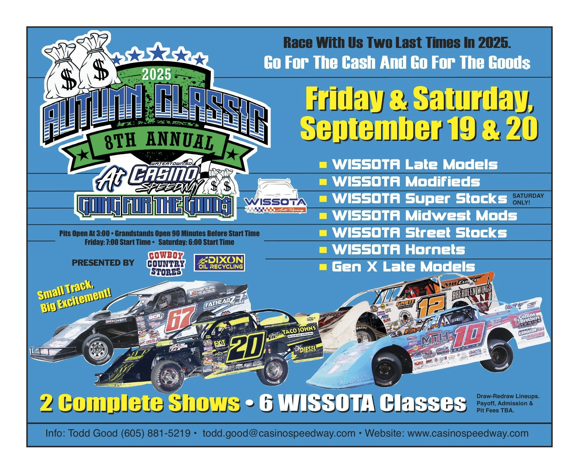 MILLER, SD (August 15) - Miller Central Speedway hosted its final race night of the 2025 season Friday, with WISSOTA Super Stocks, Midwest Mods and Street Stocks part of its program.
