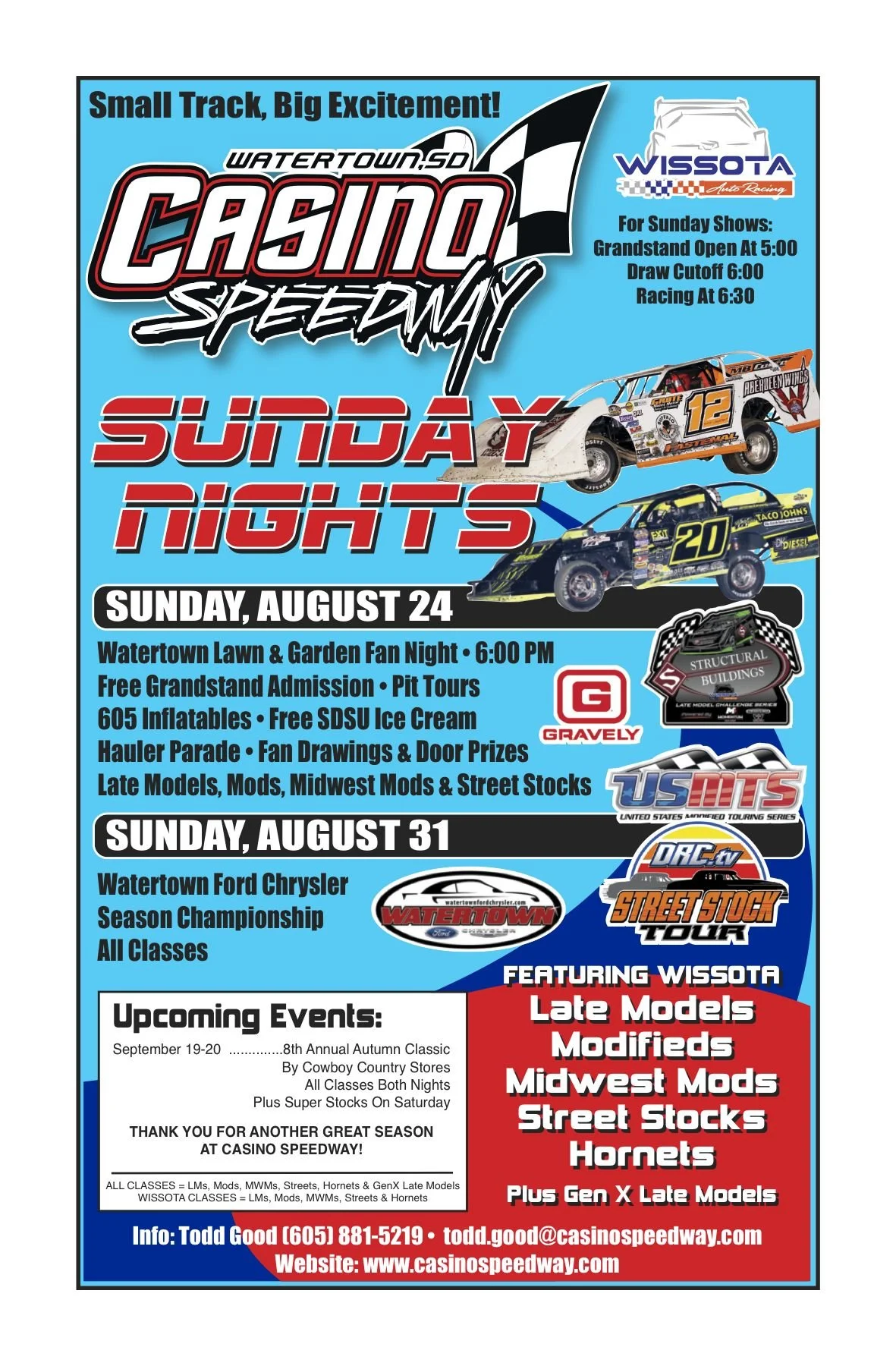WATERTOWN, SD (August 16) - Matthew Dittman pocketed a whopping $2,300 paycheck for winning the WISSOTA Hornet portion of the Clash at Casino on Saturday night. Along with the historic payout in the Hornets, Shane Sabraski left town with a pair of four-figure winner’s cuts, Mike Nichols came out of retirement for a victory, and Levi Randt earned his first checkered flag at Casino Speedway.