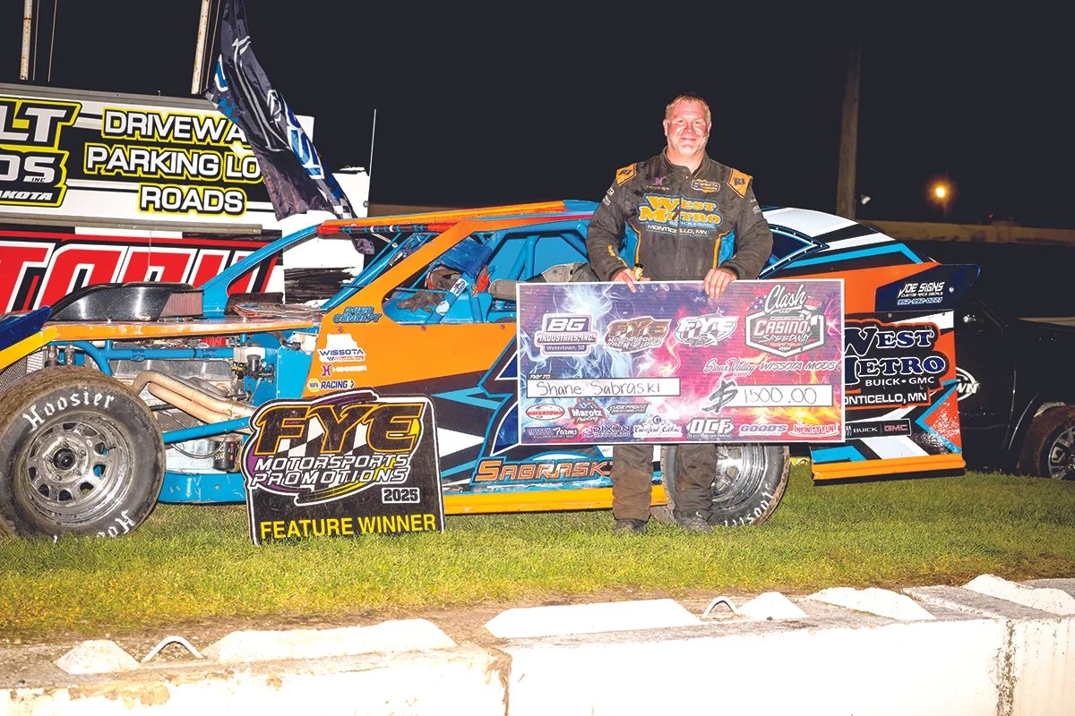 Sabraski started on the pole for the 20-lap WISSOTA Super Stock main event. Despite a few cautions in the early laps, he set the pace and slipped away from the battle for second between Dexton Koch and Trevor Nelson. Austin Arbogast ran fourth ahead of a skirmish for fifth.