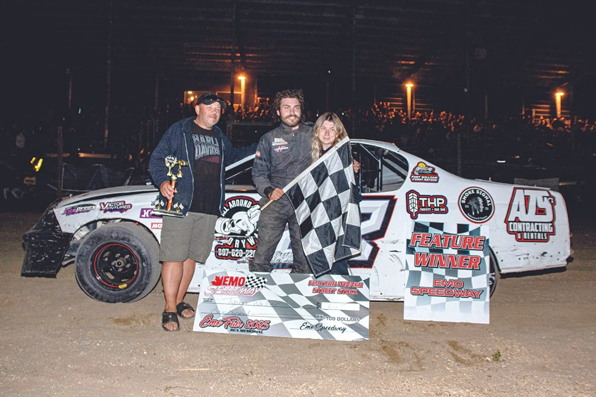 A Feature 1 (20 Laps): 1. 41-Tyler Vernon[4]; 2. 21-Wyatt Boyum[2]; 3. 17B-Ashley Boyum[11]; 4. 8-Justin Jones[3]; 5. 85-Jamie Davis[7]; 6. 3H-Keelan Hall[6]; 7. 16-Garrett Paull[10]; 8. 07HD-Jesse Mckuski[5]; 9. 95B-Brody Strachan[1]; 10. 17-Christopher Leek[8]; 11. 22R-Nathan Roy[13]; 12. 66-Bill Speak[15]; 13. 10D-Patrick Davis[17]; 14. 222-Bob Hammond[16]; 15. 3X-Jesse Thompson[20]; 16. 07HD1-Stan Dueck[9]; 17. 31J-Mike Jacques[19]; 18. 59X-James Lambert[12]; 19. (DNF) 50-Brady Caul[14]; 20. (DNF) 18-Hunter Brink[18]