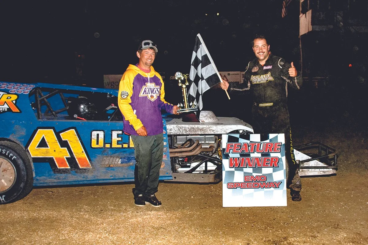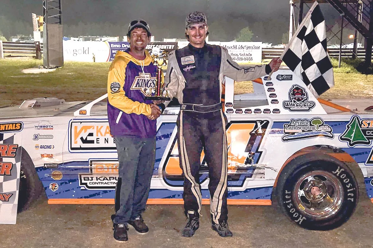 A Feature 1 (20 Laps): 1. 22-Tyson Waller[5]; 2. 54X-AJ Kellar[6]; 3. 21-Nate Owen[8]; 4. 24-Andrew Piilo[4]; 5. 7-Andrew Trimble[11]; 6. 54-Dean Kellar[12]; 7. 02-Lyle Thompson[1]; 8. 86-Kevin Desserre[7]; 9. 85-Kisha Desserre[13]; 10. 45-Braydan Leicht[10]; 11. T53-Sacha Torkkeli[14]; 12. 10T-Hayden Trimble[17]; 13. (DNF) 55-Tylar Wilson[3]; 14. (DNF) 9-Sam Williamson[2]; 15. (DNF) 583-Nathaniel Keck[15]; 16. (DNS) 23-Jamee Desserre; 17. (DQ) 55W-Carter Wieringa[9]